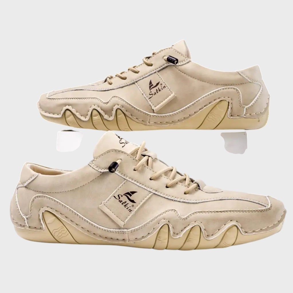 Experimente o conforto e a durabilidade com nossos sapatos feitos à mão, confeccionados em couro macio e flexível. Cada par é projetado com uma sola ondulada única que oferece excelente grip e conforto.