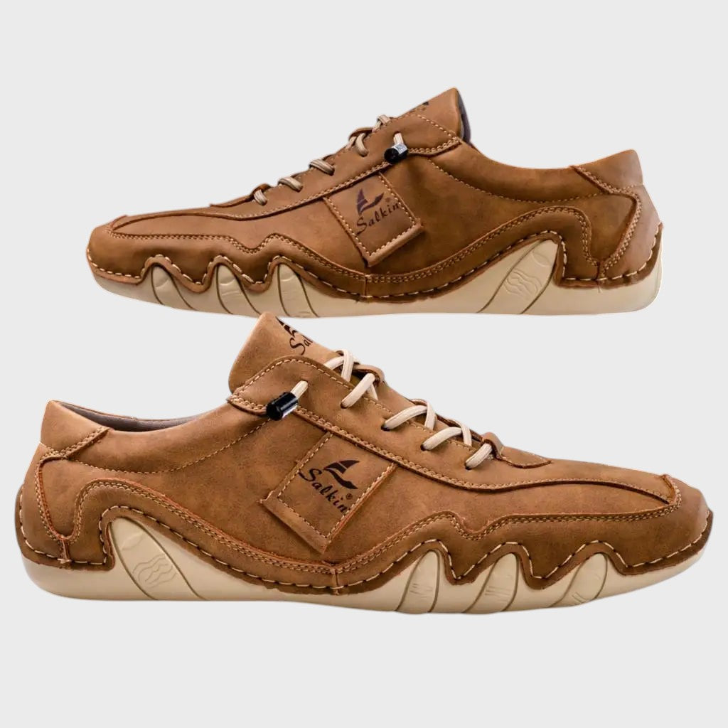 A rica textura do couro não só proporciona um estilo clássico e intemporal, mas também envelhece com graça, adquirindo um caráter único ao longo do tempo. Sinta a diferença que um bom artesanato pode fazer em cada passo!