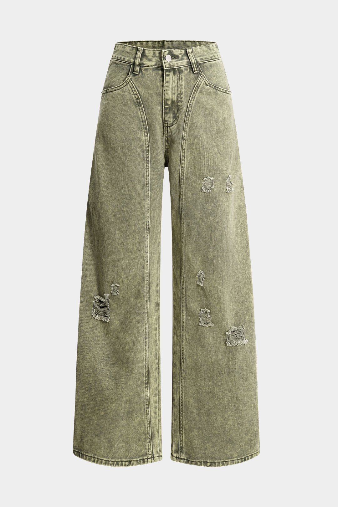 Glória - Calças de Ganga de Perna Larga Desgastados