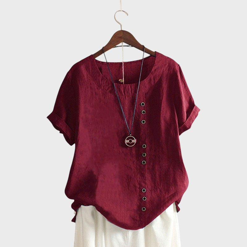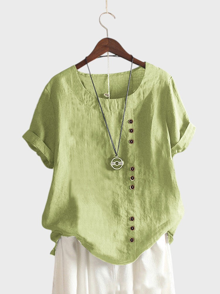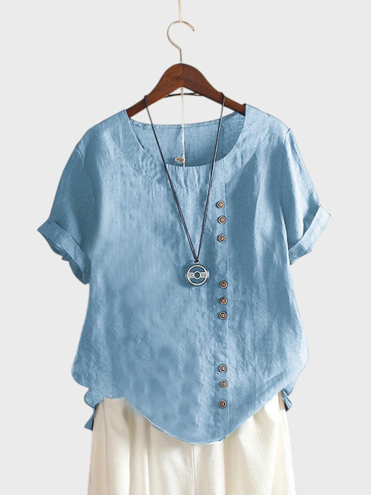 Beatriz - Camisa Básica de Manga Curta com Decote Redondo
