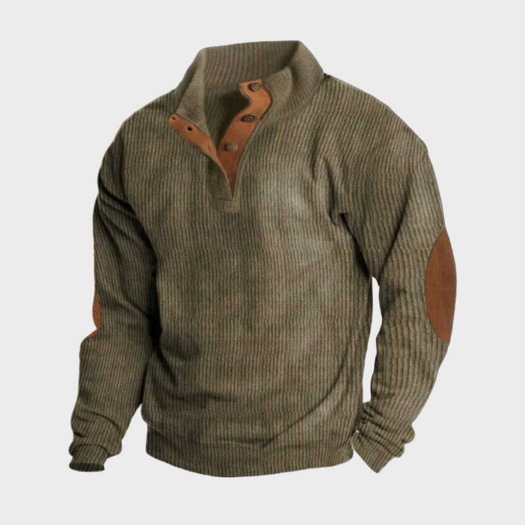 - Design inspirado no vintage: Tricot canelado e remendos nos cotovelos para um aspeto nostálgico e refinado.