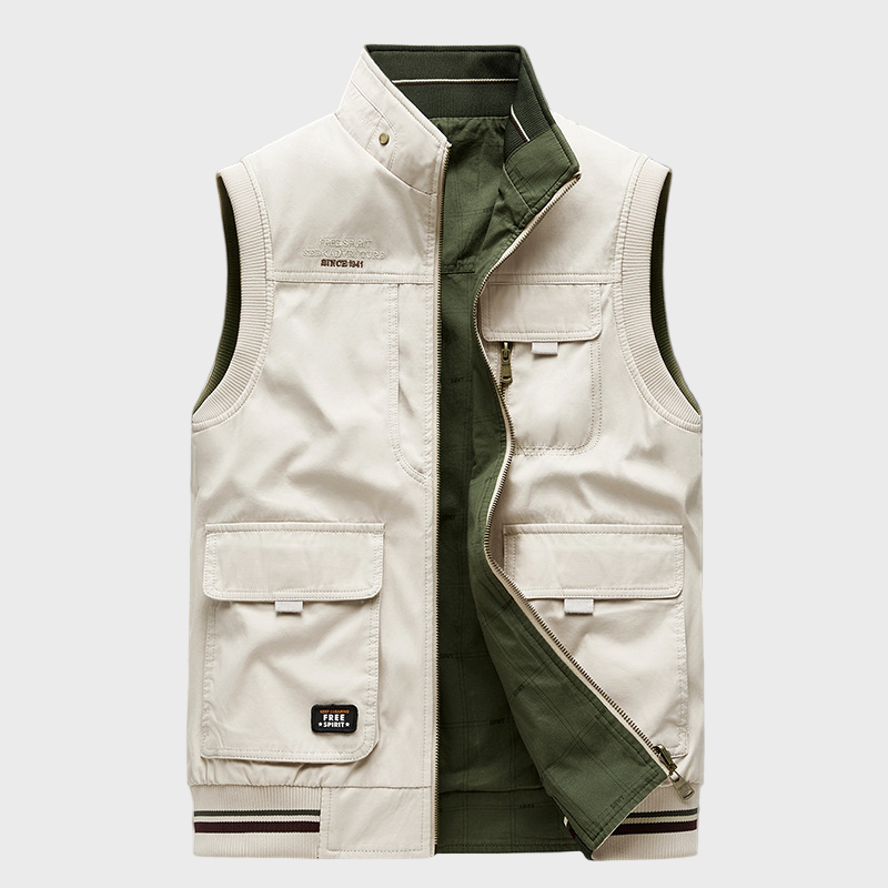 Construída para o movimento e projetada para a presença, o nosso colete combina utilidade com uma silhueta contemporânea e elegante. Sua estrutura limpa é acentuada por múltiplos bolsos funcionais, ombros estruturados e bainhas caneladas em contraste, oferecendo estilo e praticidade em uma camada versátil.