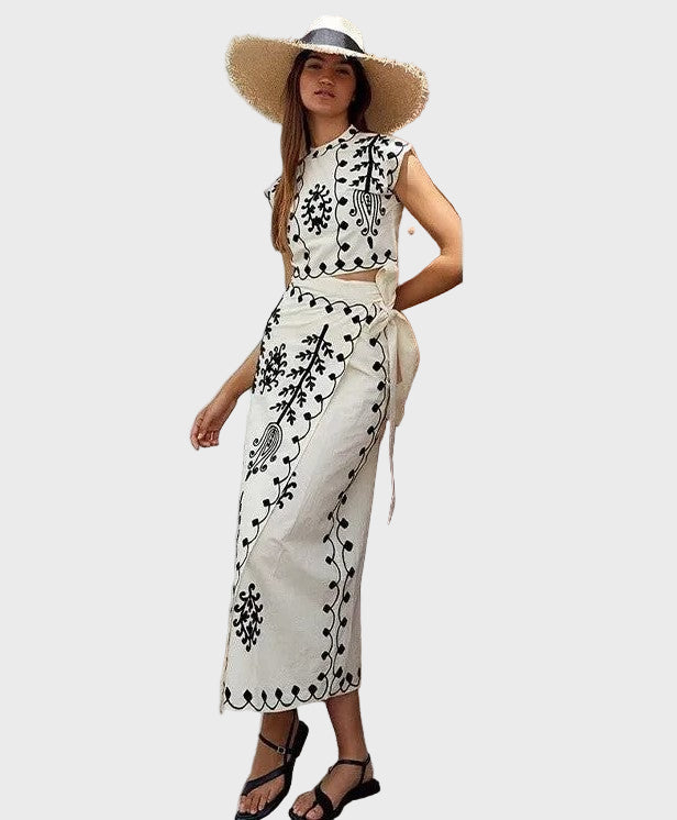 Elegância sem esforço com um toque de espírito livre. Vire cabeças com o Conjunto Bordado Elegante, onde o charme artesanal encontra a facilidade moderna. Com bordados delicados, corte descontraído e tecido respirável, este conjunto de duas peças é tão versátil quanto atraente.