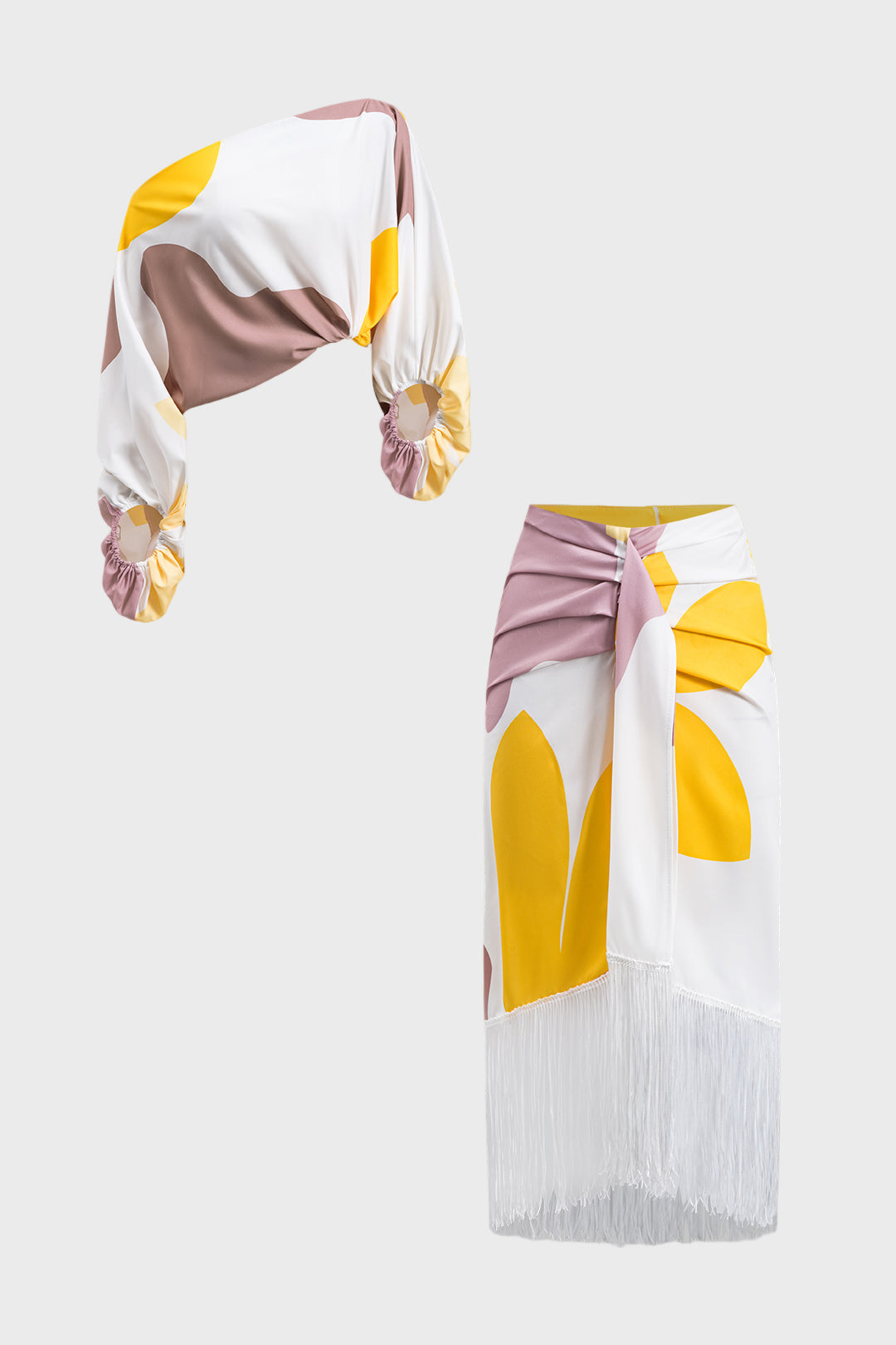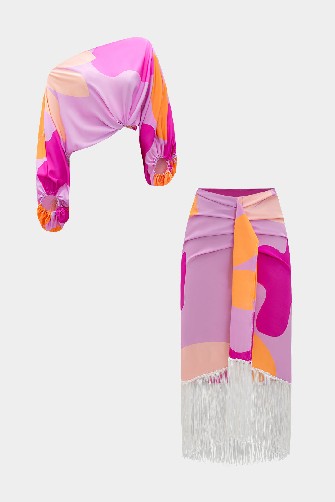 Vanessa - Conjunto Top Assimétrico & Saia Franjada