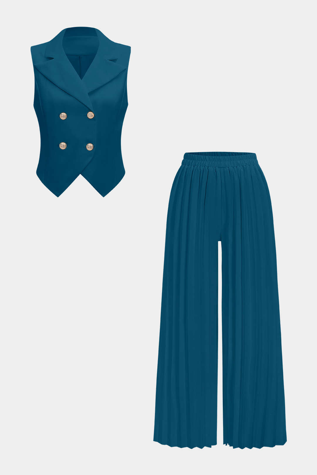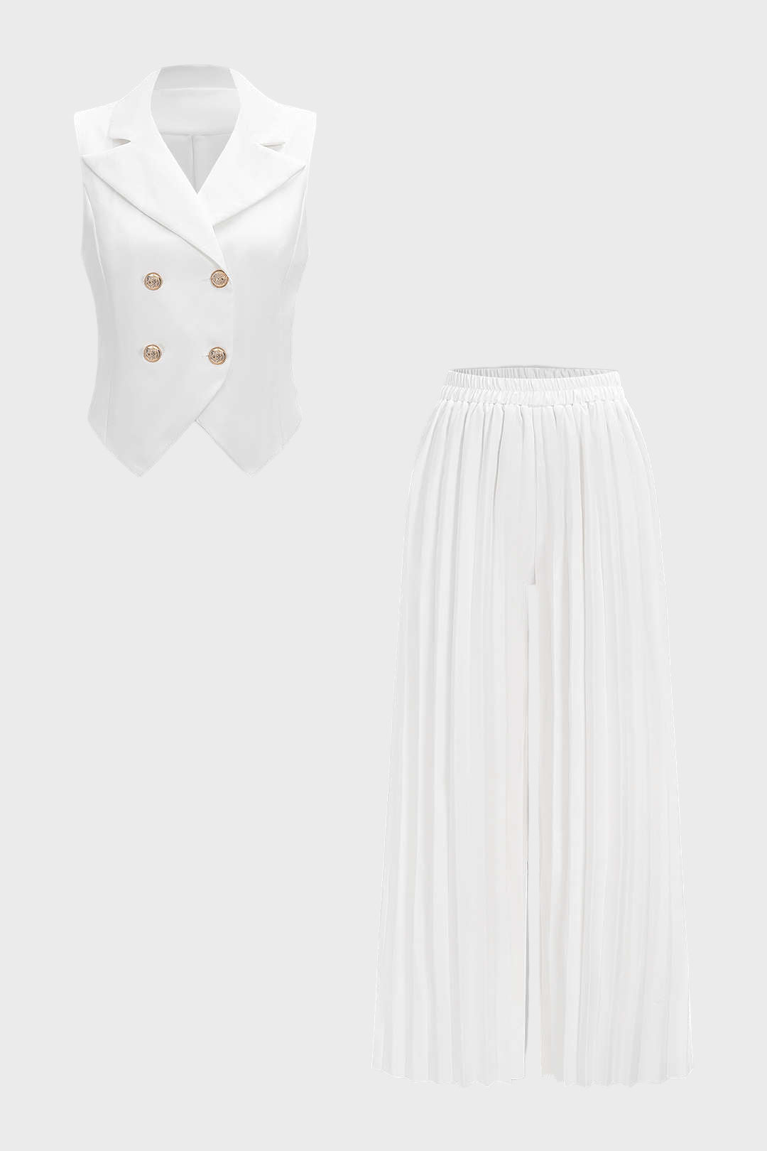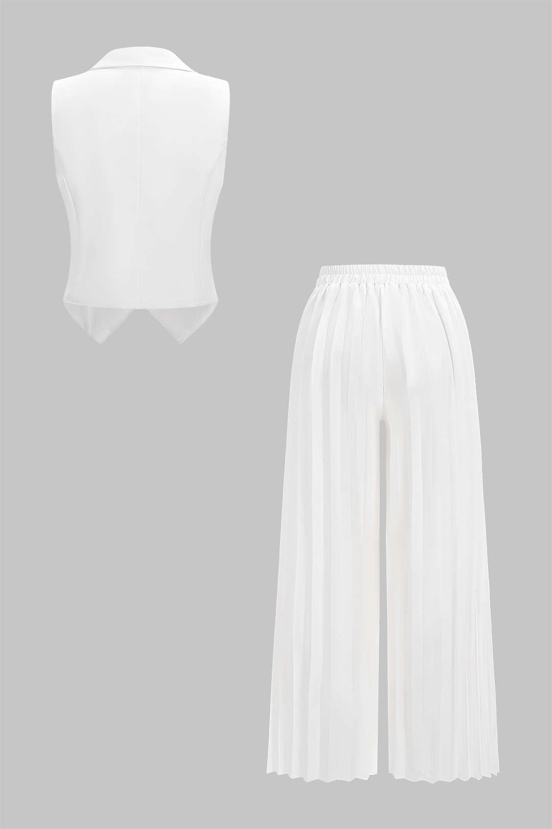 Luana - Conjunto de Colete e Calças Plissadas de Cintura Alta