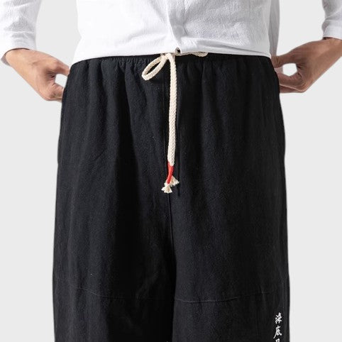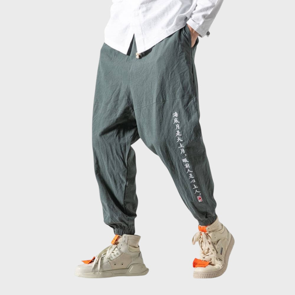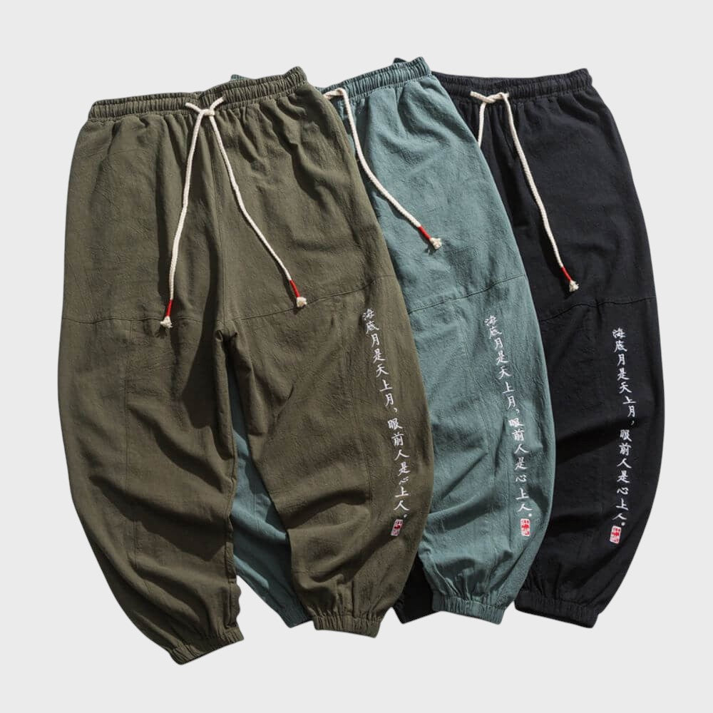 Calças de conforto japonesas reúnem o design tradicional japonês e o conforto moderno. Fabricadas com materiais de alta qualidade, estas calças oferecem um estilo elegante e minimalista, perfeito para qualquer ocasião casual ou semi-casual. Com um corte descontraído e um conforto excecional, as calças Odemar são a sua escolha para uma moda sem esforço