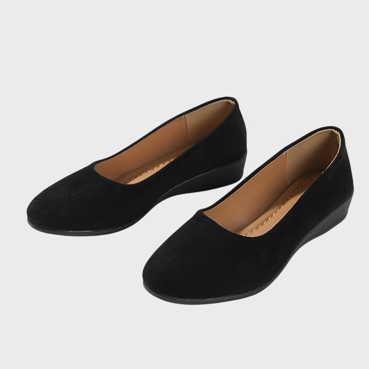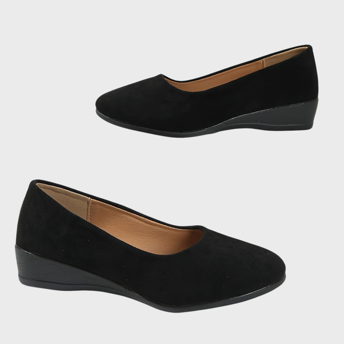 Concebidas para mulheres com pés sensíveis ou cansados, combinam um salto cunha estável com uma palmilha macia e flexível que se adapta naturalmente à forma do pé.
